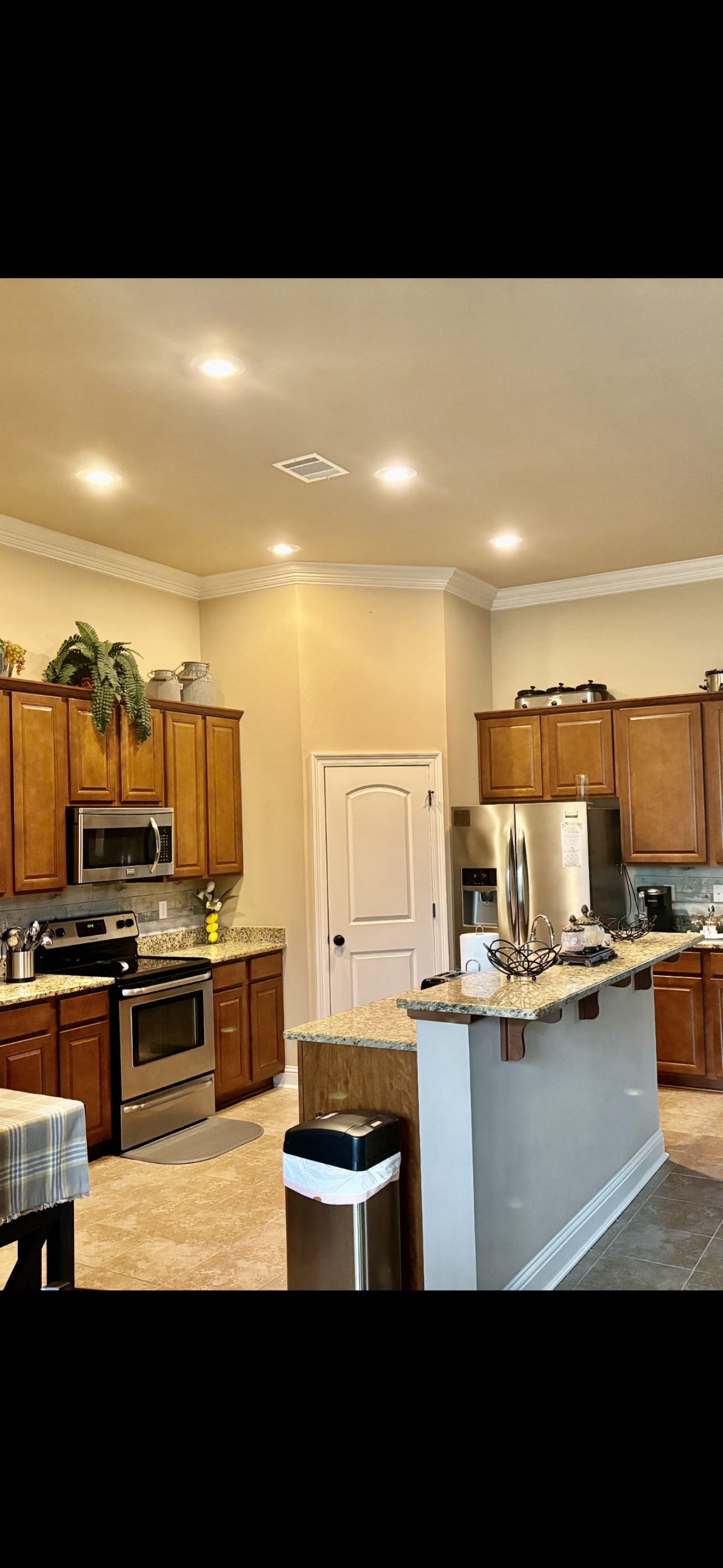 Well stock kitchen ready to make breakfast, lunch and dinner like at home. This kitchen is equipped with containers and utensils for eating crawfish, a warmer for party foods, and utensils for use of the barbque pit.